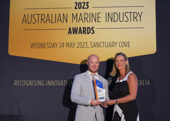 ‘The 2023 Apprentice of the Year Award,’ presented by Simon Hislop from TAFE Queensland, rewards the winner with a return trip to the world’s largest marine equipment trade show, METSTRADE in Amsterdam. This year’s proud recipient was Brent Studman from Echo Marine Group. Brent, a 3rd-year apprentice cabinet maker in the fit-out department at Echo Marine Group, demonstrated exceptional dedication within the marine industry. His remarkable efforts were recognised with the Duke of Edinburgh Gold Award, and he continues to improve his knowledge and skills each week.